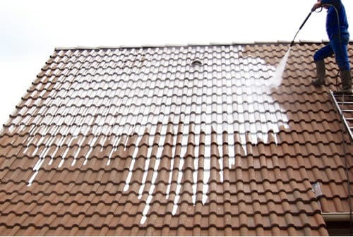 3. Nettoyage à haute pression : Le démoussage débute par un nettoyage à haute pression, qui permet de retirer les mousses, lichens, et autres saletés accumulées. Cette étape est cruciale pour éliminer les racines des mousses qui s’infiltrent dans les matériaux de couverture.